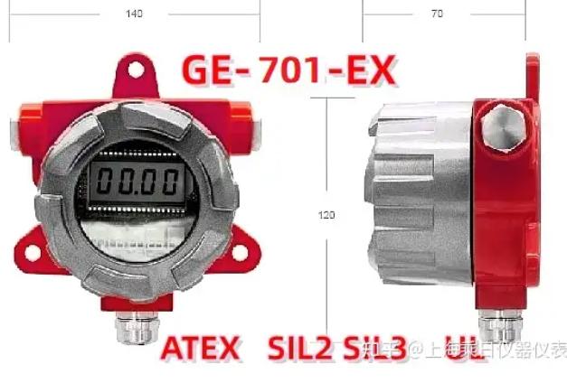 GE-701-EX系列防爆数显二次表,也叫做隔爆型防爆远传表,可以接受4-20mA信号在异地显示对应的数值。其可以接受远程传来的压力变送器、差压传感器、流量计等仪器仪表的4-20mA信号,然后在防爆表壳内的显示屏上显示流量或者压力大小。防爆等级:气体燃气防爆ExdbIICT6、粉尘防爆ExtbIIICT80℃ 适用于1、2、21、22区。可提供SIL2 SIL3安全等级认证产品(ATEX或者SIL2 SIL3产品的制造标准特殊,订购或询价时,请特殊说明)。本产品为定制仪表,用户订购前需告知4-20mA对应的量程和压力或流量单位。本防爆数显仪表可以显示4位数字的参数值,也可根据客户需求进行定制特殊要求的参数。